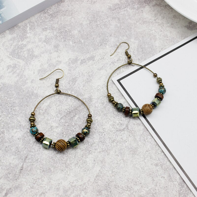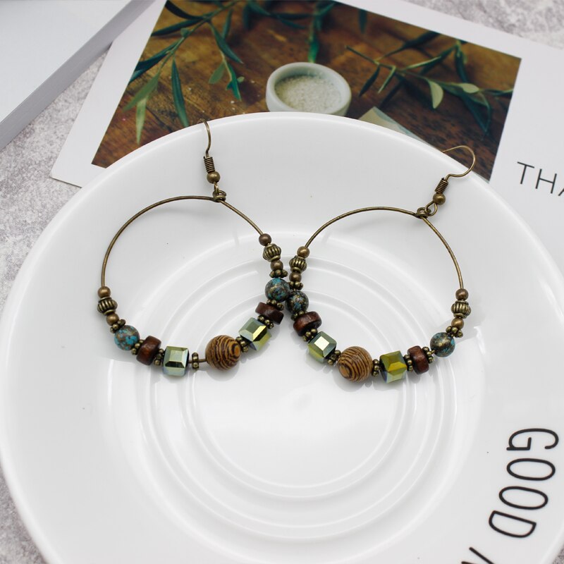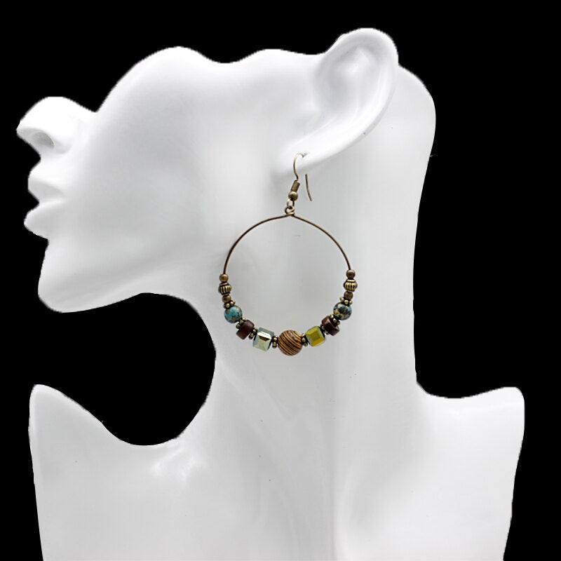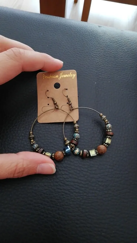 EXYNLON’s Circle Earrings are a beautiful, classy way to incorporate a hint of Bohemian style into your daily appearance. Their elegance lies in their simple hoop design, which showcases wooden elements with earthen tones, all housed on a metal hoop that is 4.5 wide and 6 cm long. Like all of our products, the quality of these earrings is top-notch: made of alternating wooden and crystal pieces with zinc alloy metal for its posts, these earrings will last for many occasions to come. Give them as a thoughtful gift for a special woman in your life. See also these Round Earrings available along with other designs in the wood earrings.