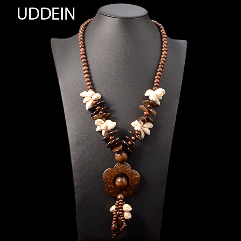 You’ll be the envy of all your friends with this Coconut Wood Flower Necklace, measuring 65cm in perimeter and weighing 76g. Featuring a simple rope chain flanked in small wooden beads, the necklace features a lovely wooden flower pendant, with smaller wooden flowers creeping up the chain on both sides. There are more to see in the wood jewelry section like this wood ring necklace