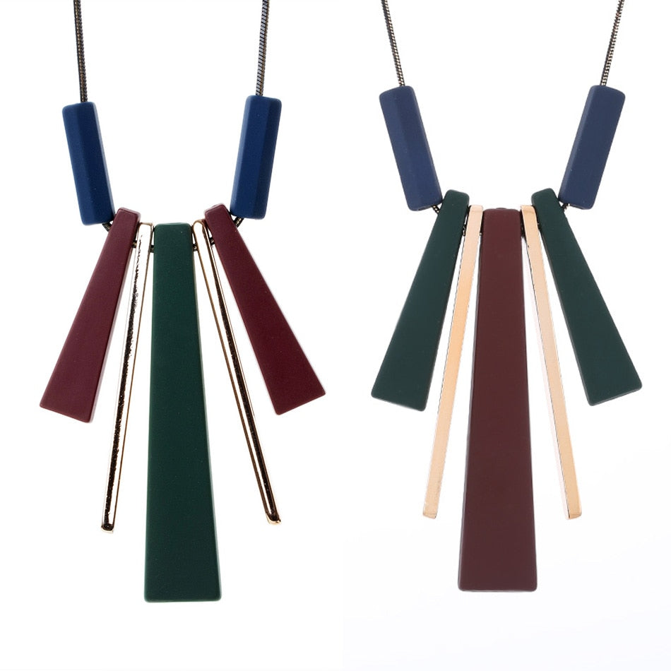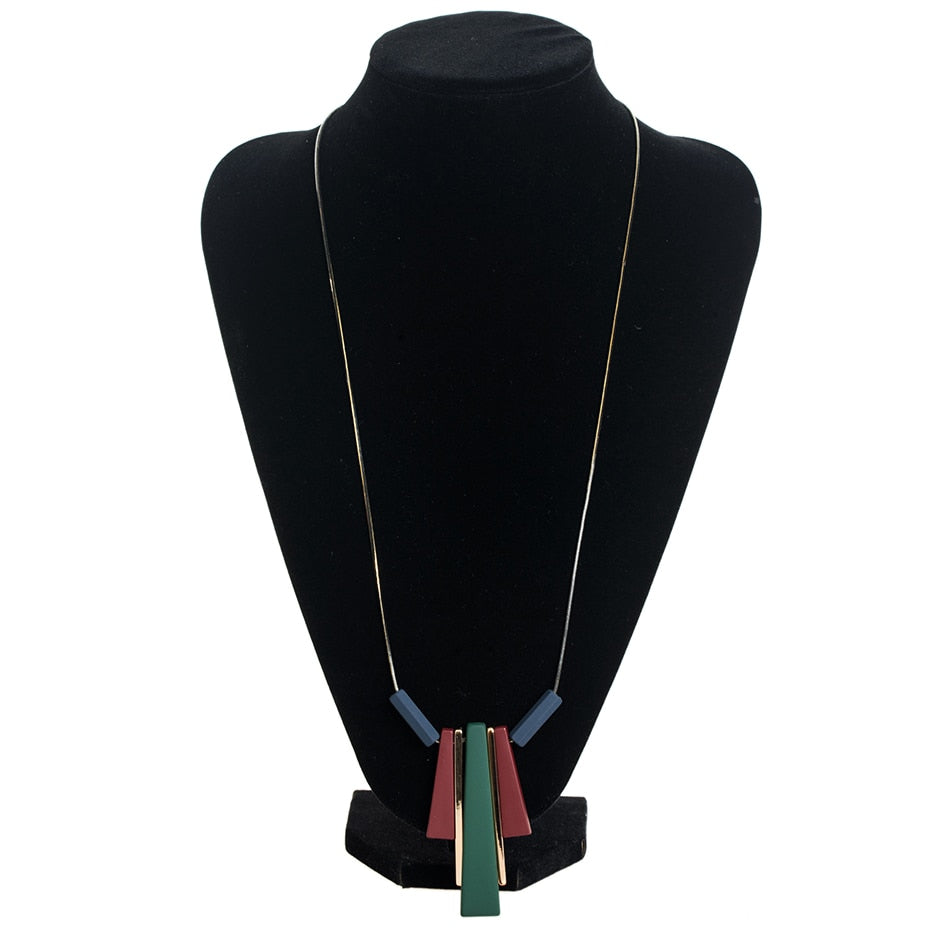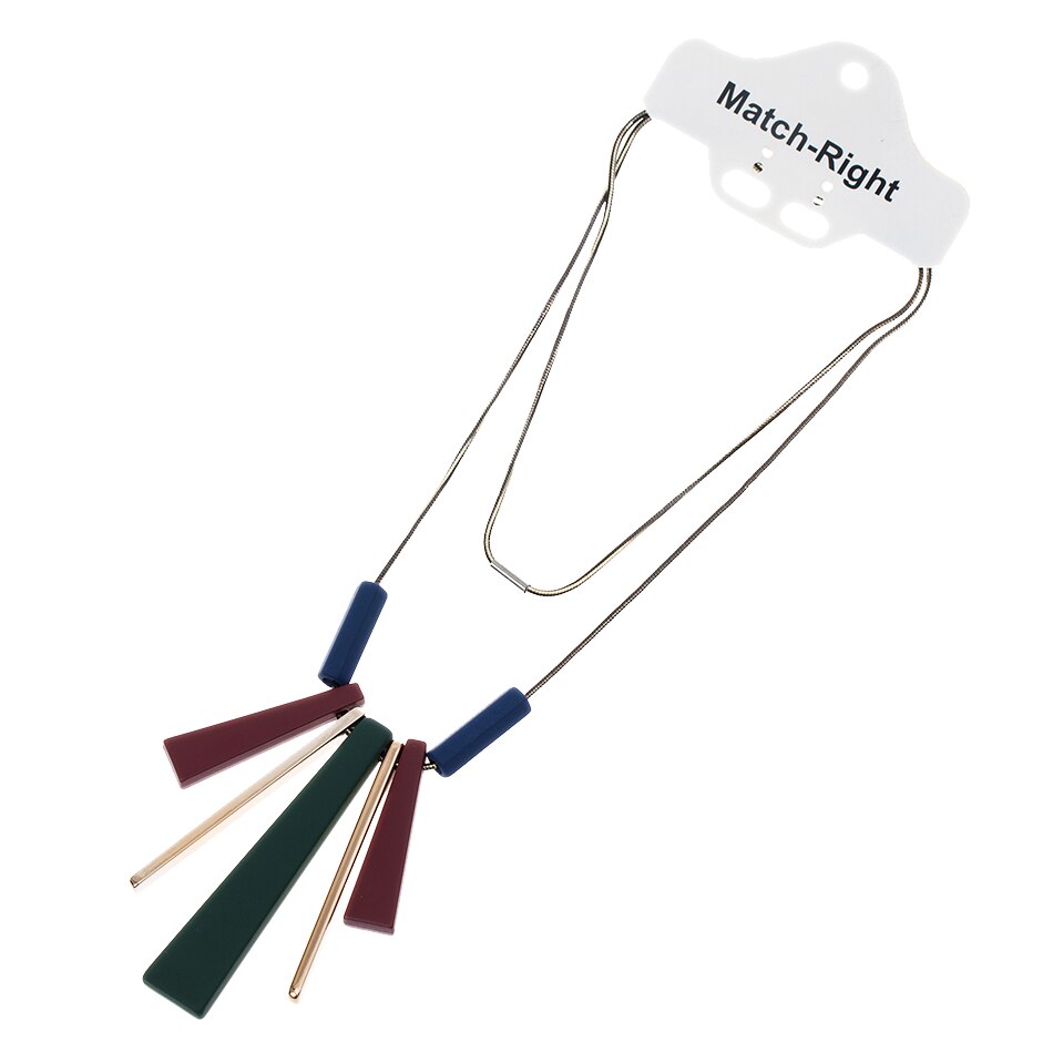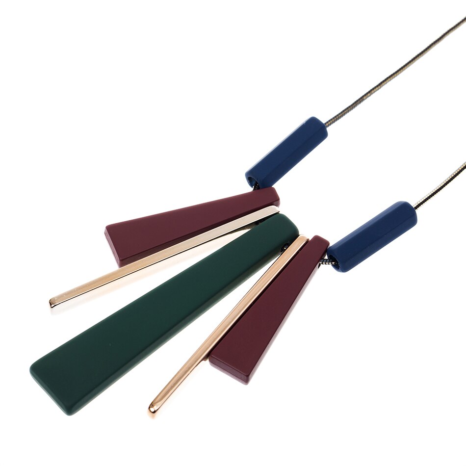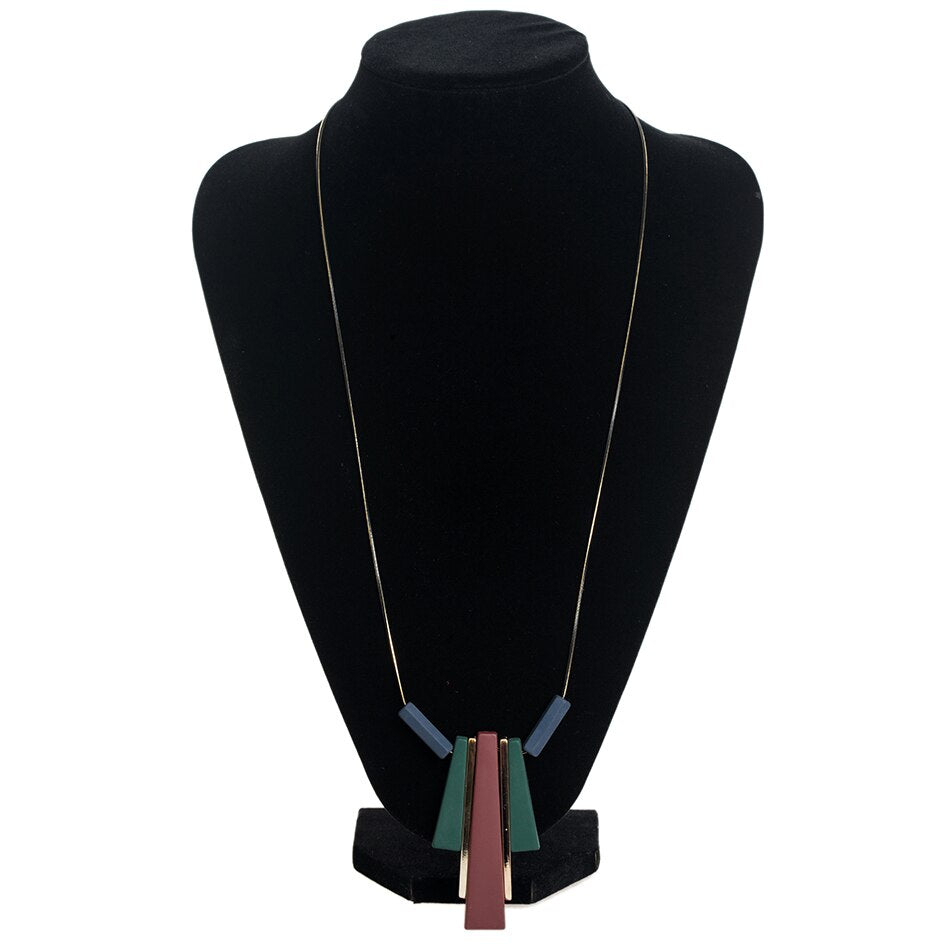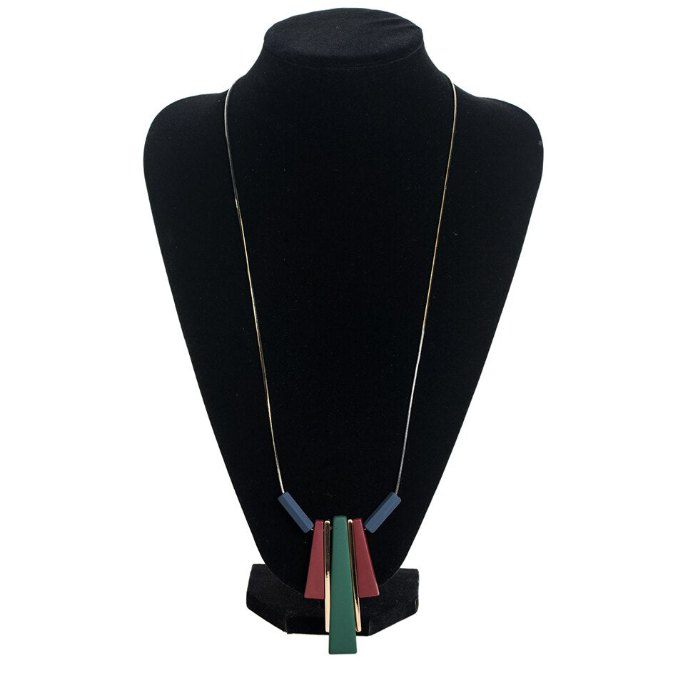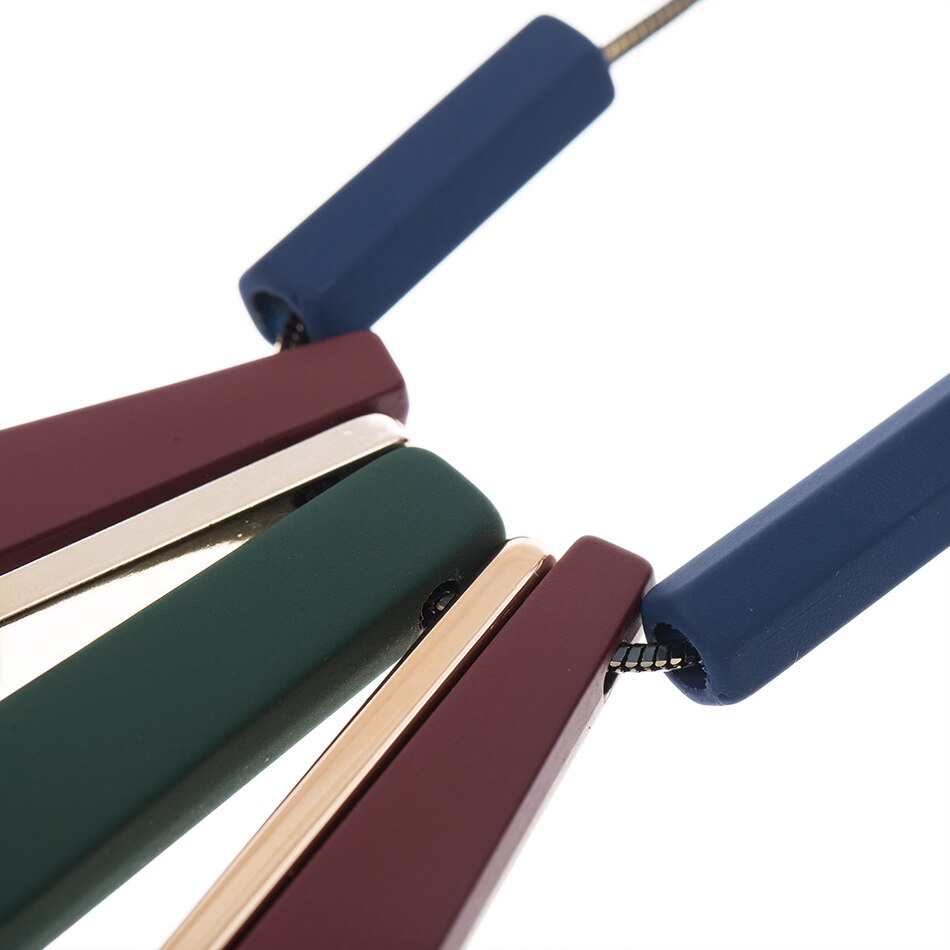 Love the colour burgundy? Then this Evening Wear Wood Necklace is for you. This modern necklace, perfect for day or night, consists of a 45cm rope chain and a striking pendant. The pendant is made up of three bold shapes, all in a magnificent shade of burgundy, interspersed with small gold beads for an added touch of glamour.
