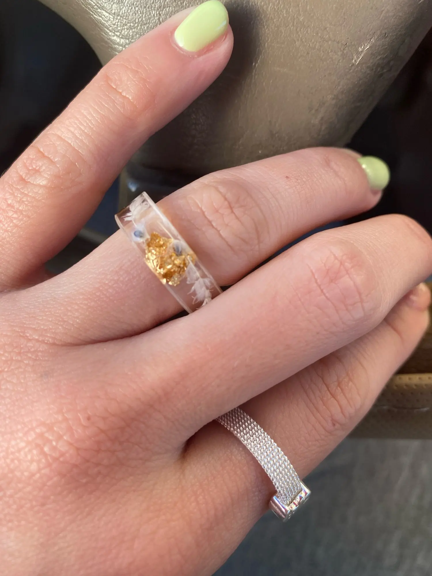 Our Handmade Ring is created with clear resin encasing unique color patterns, splashes, and shapes in brown, red, and blue. The versatility of this accessory makes it a simple way to add an extra bit of flair to your day, no matter your style! So check it out here!