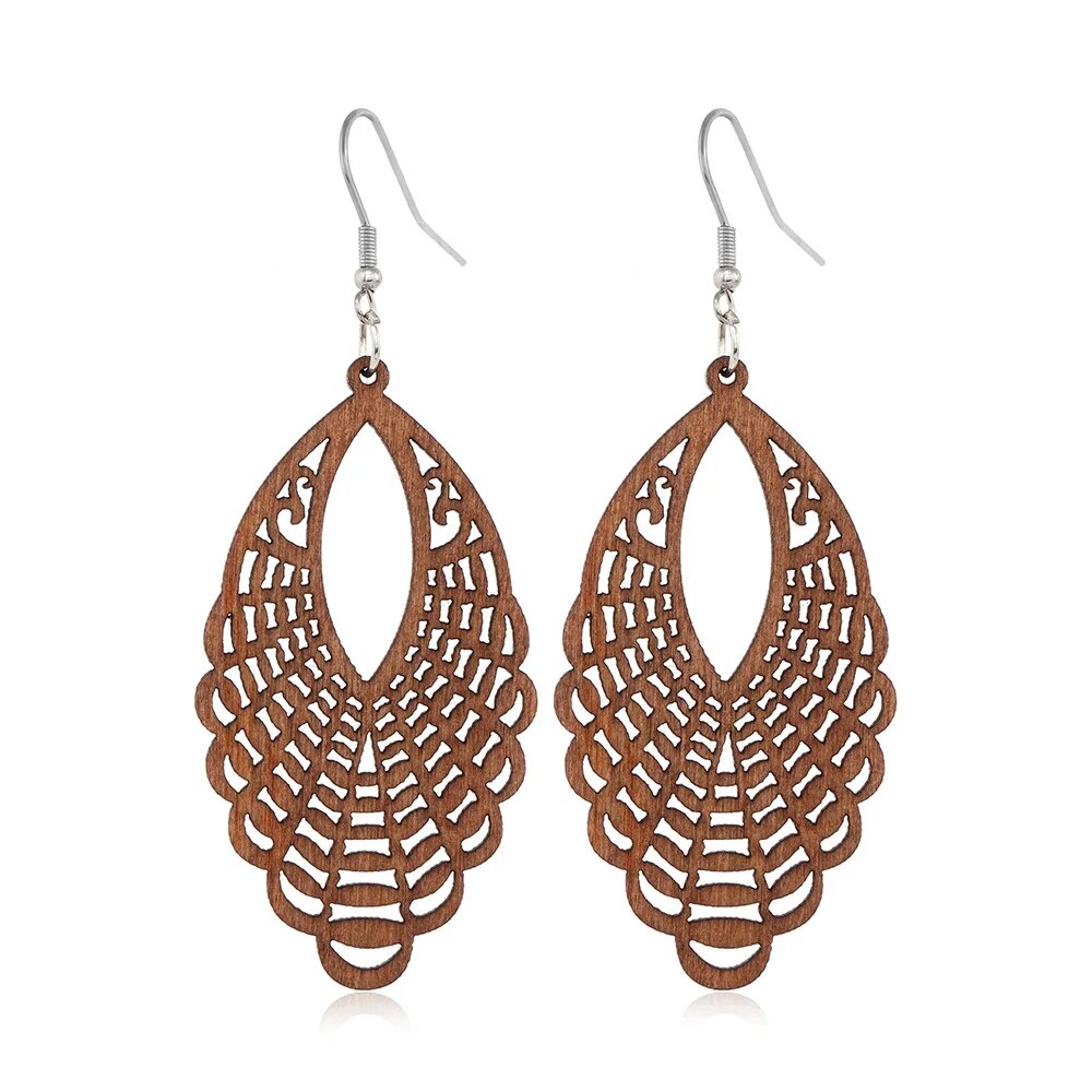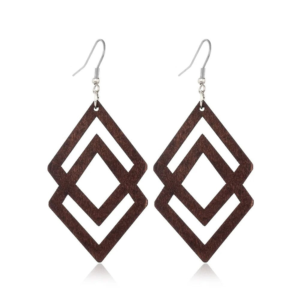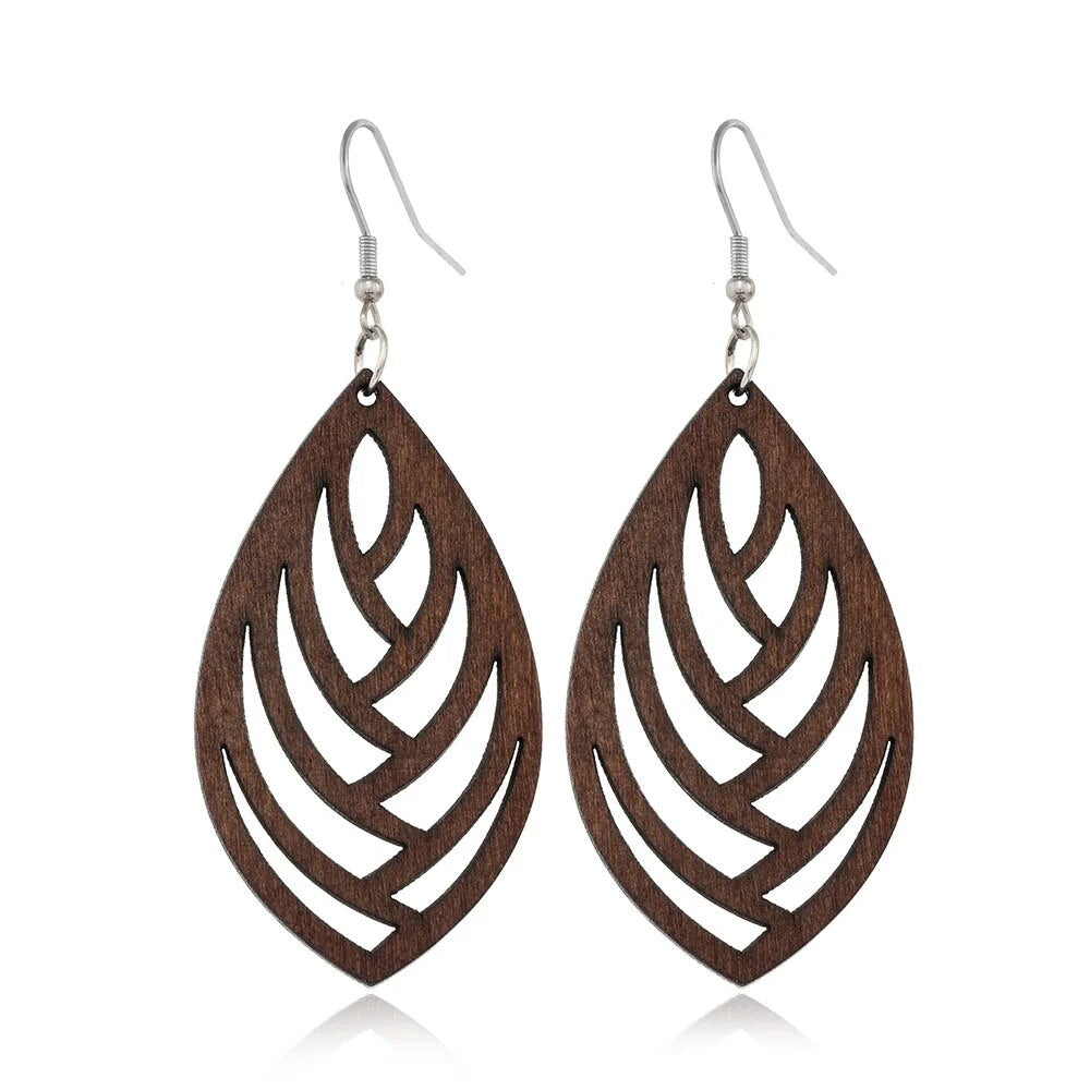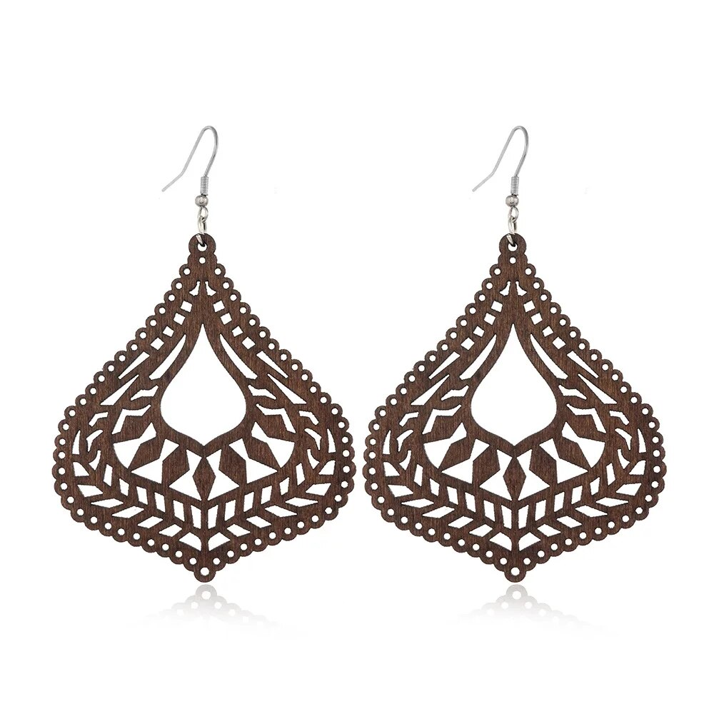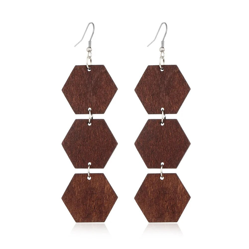 ⇨  made of wood and zinc alloy metal, your pair of earrings will be long-lived.