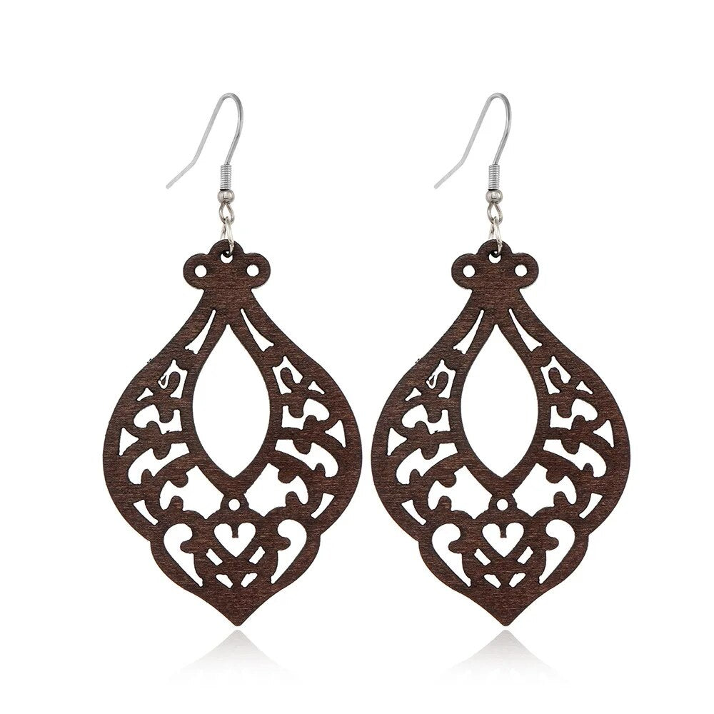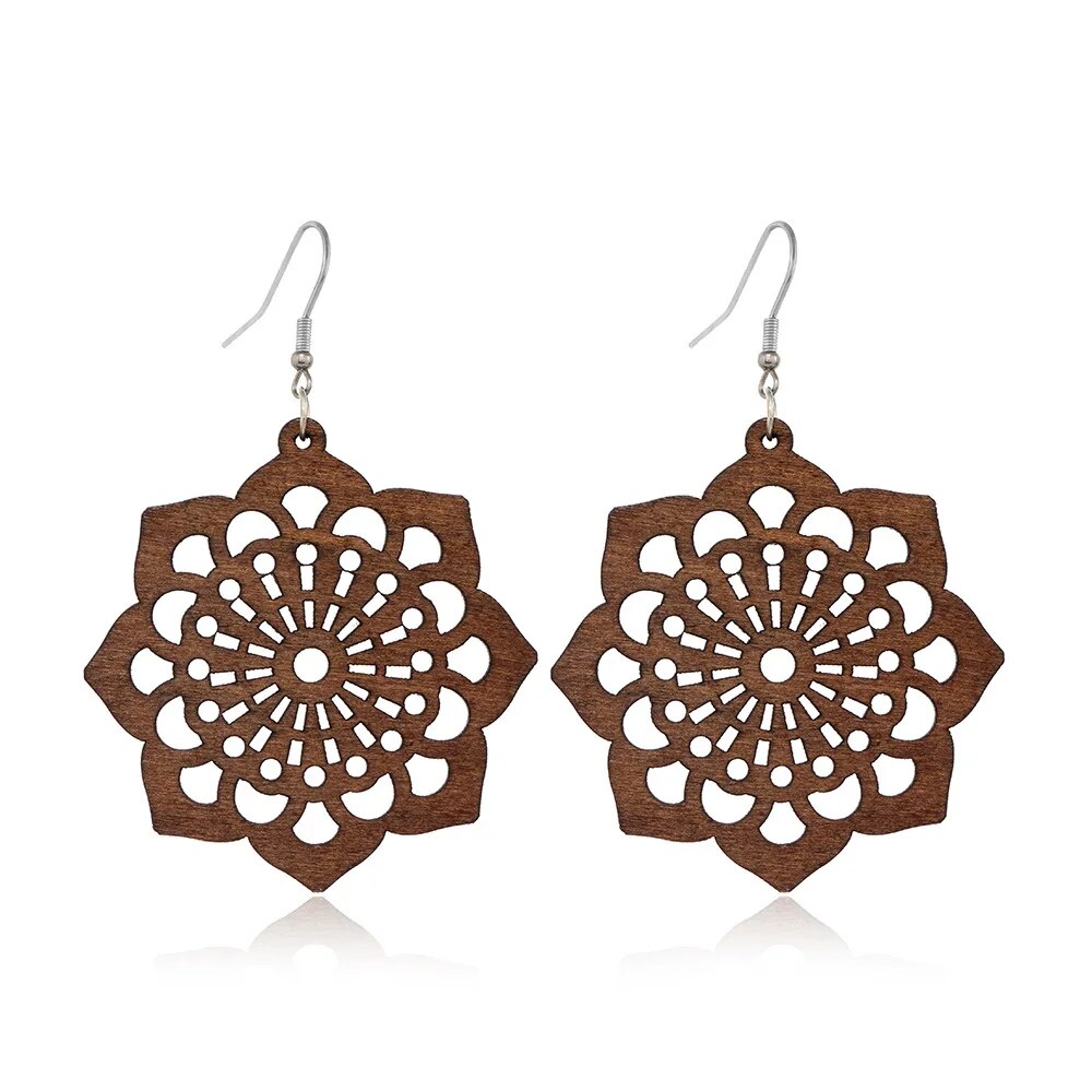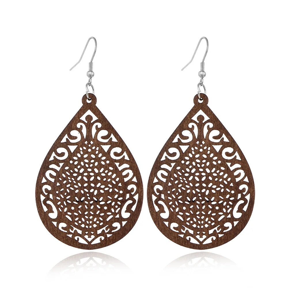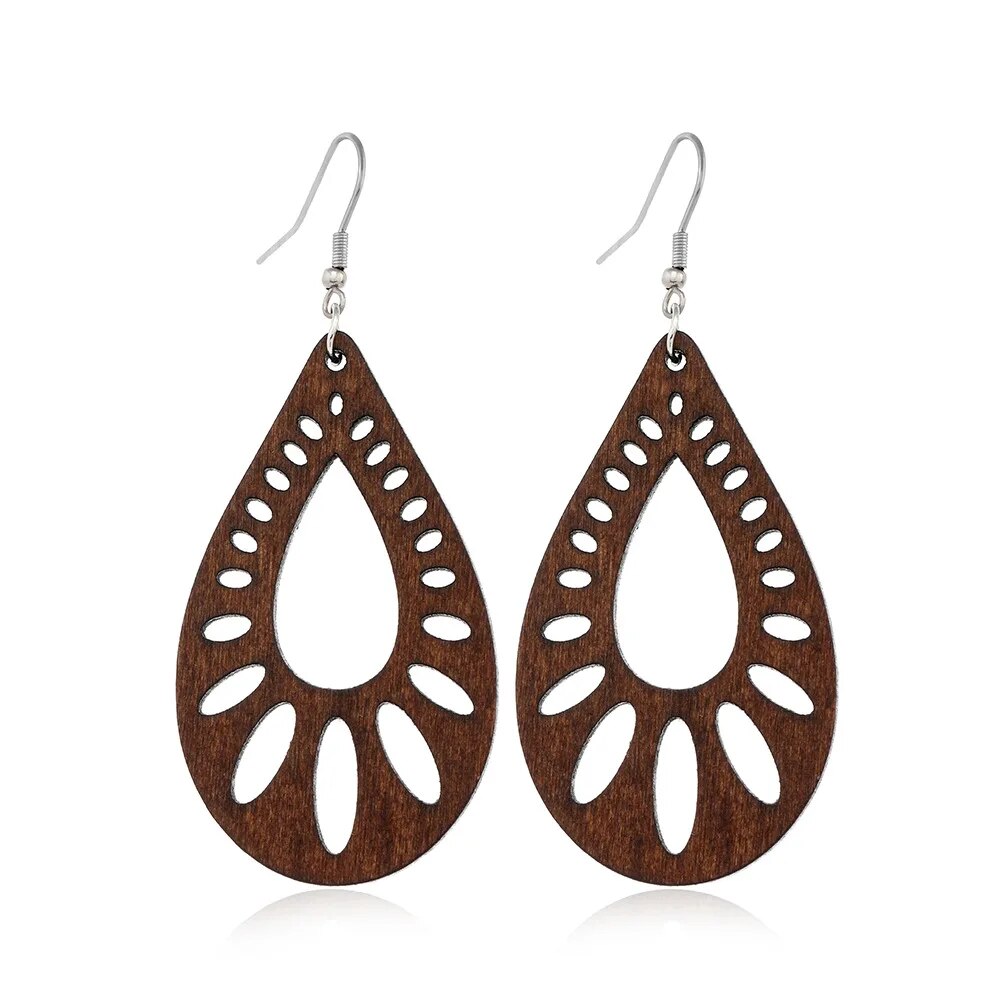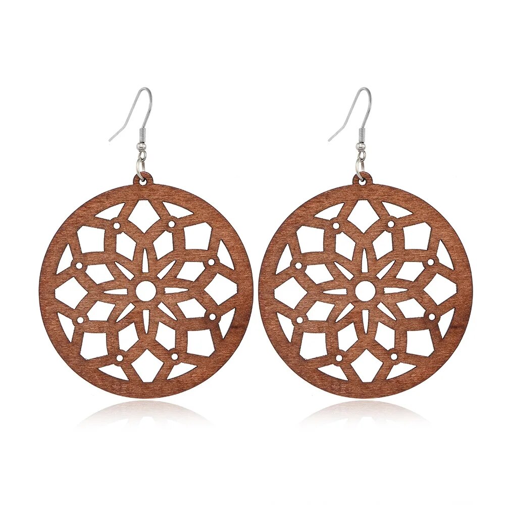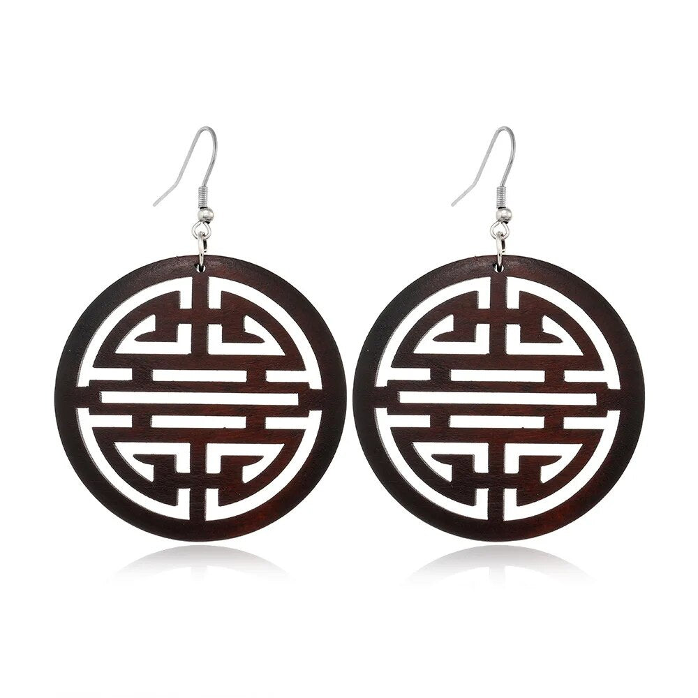 ⇨  made of wood and zinc alloy metal, your pair of earrings will be long-lived.