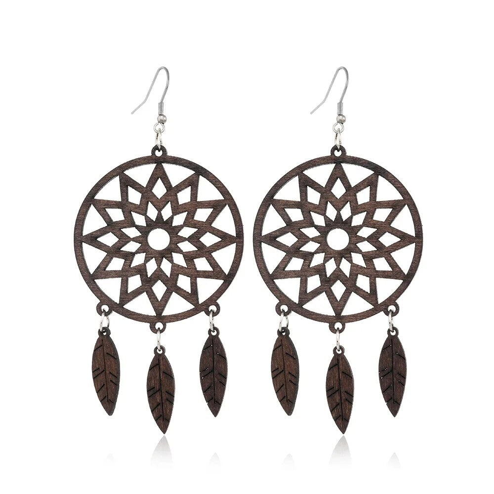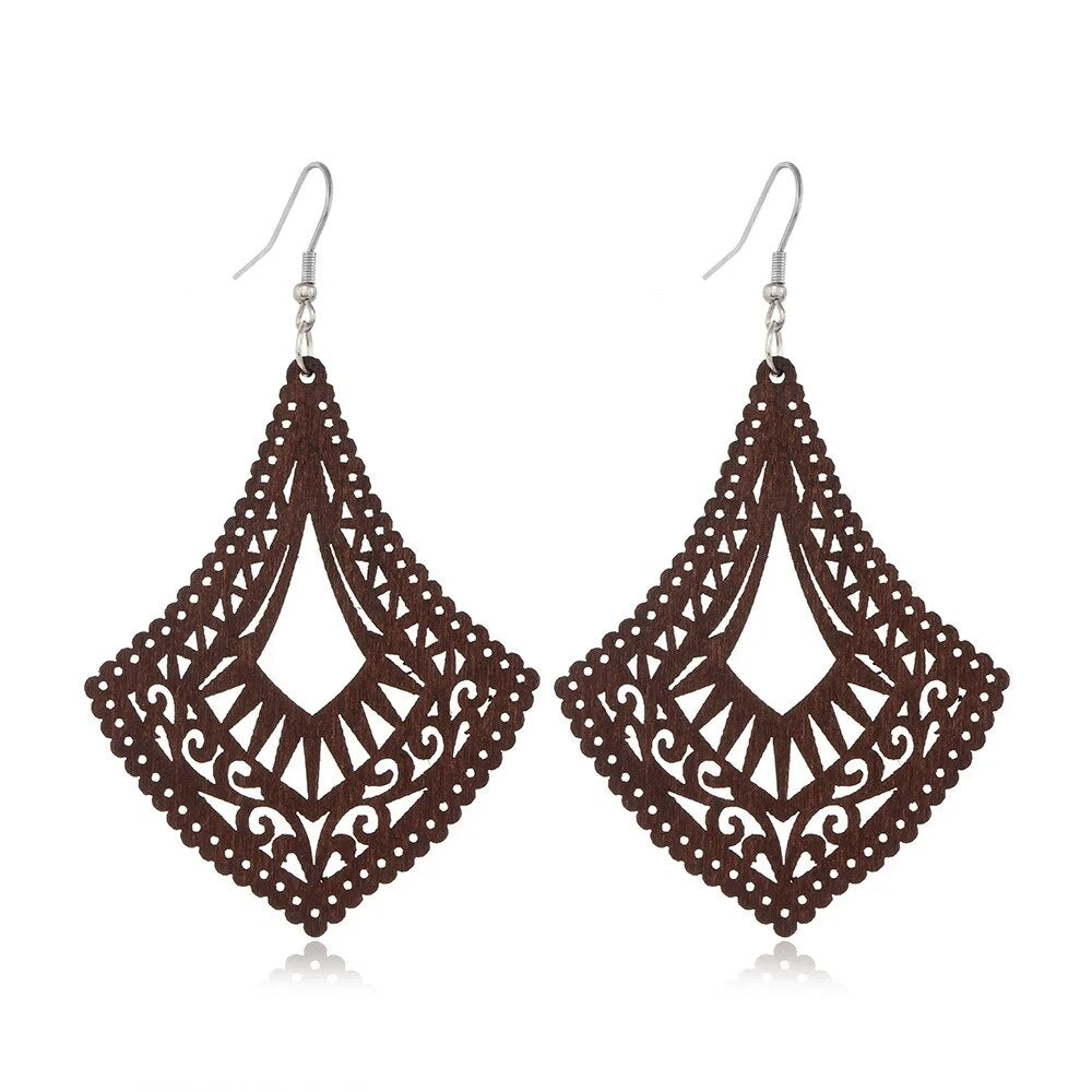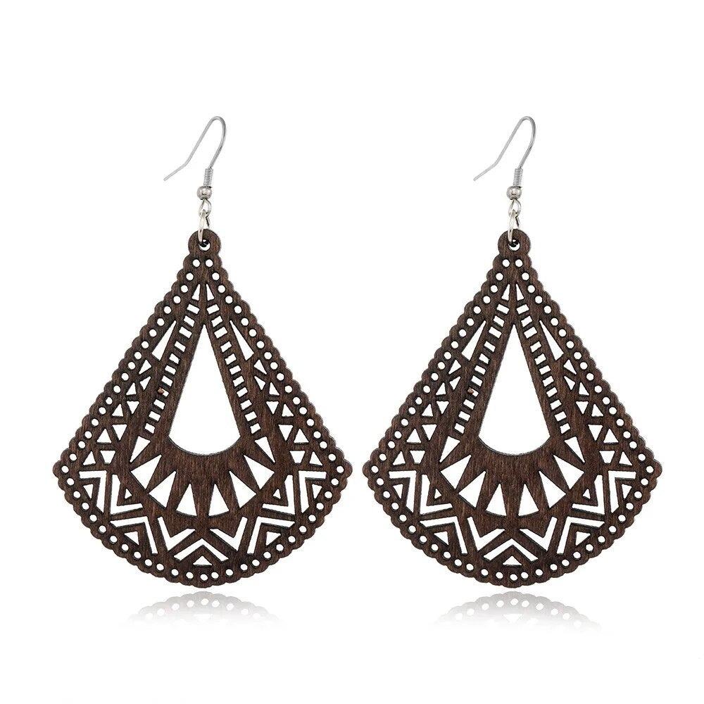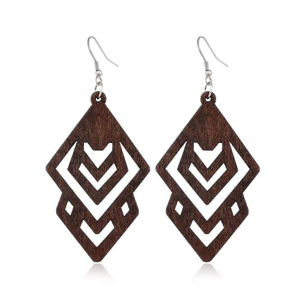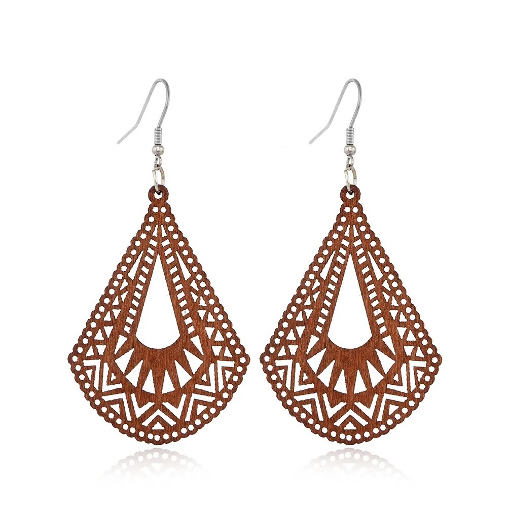 ⇨  made of wood and zinc alloy metal, your pair of earrings will be long-lived.