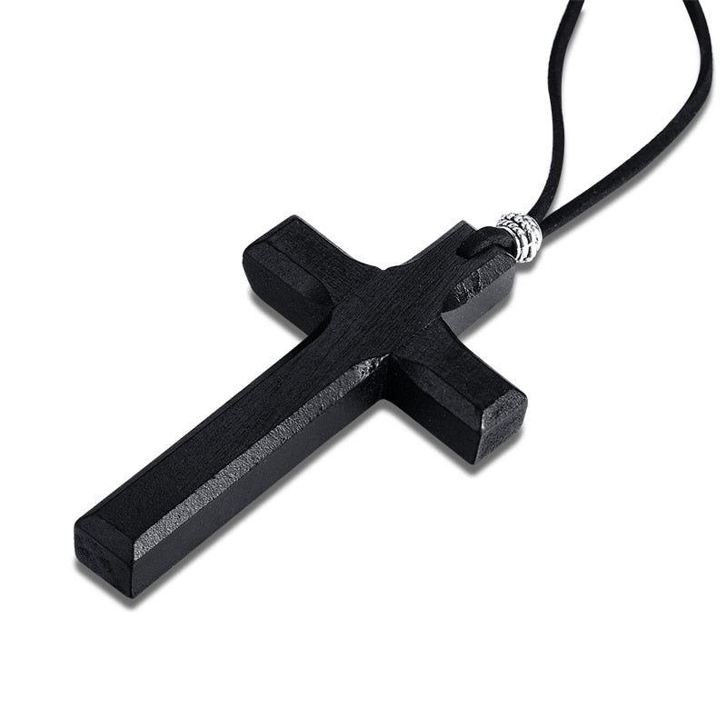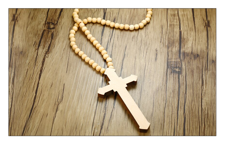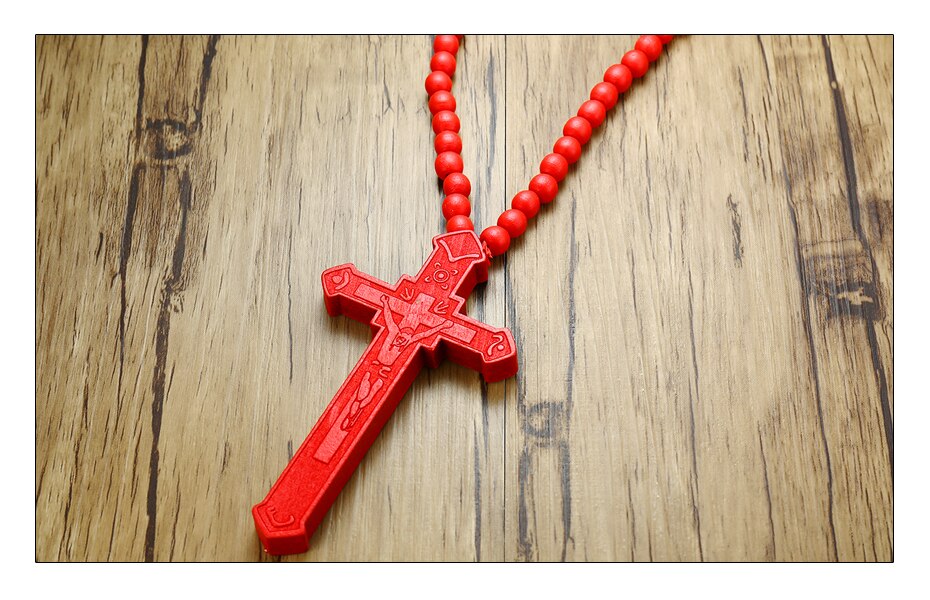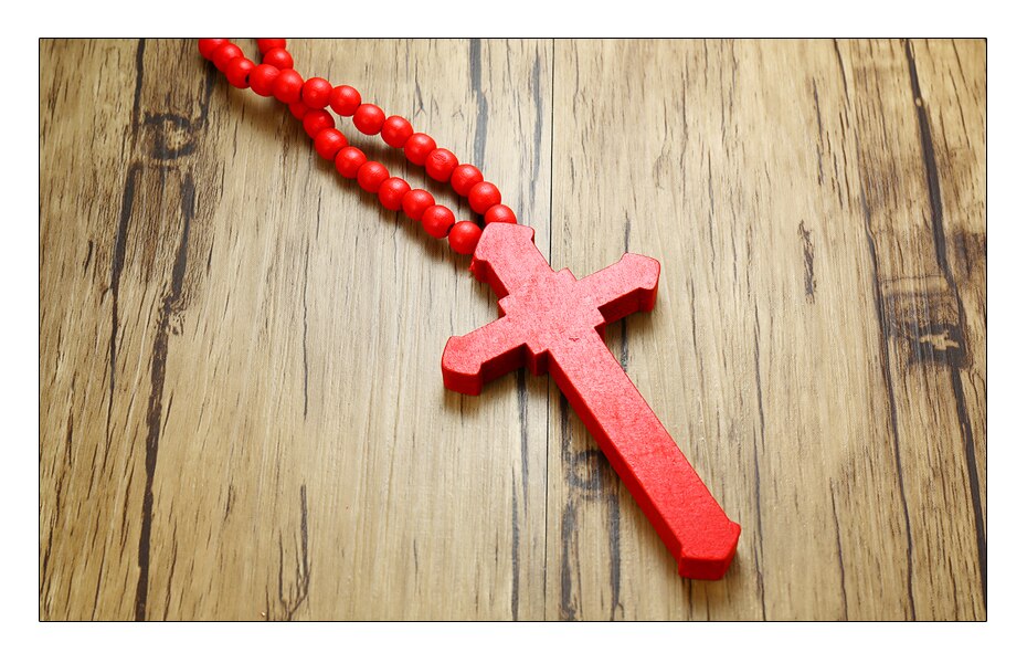 This Rosary Necklace with Cross Pendant is a striking addition to any man’s jewellery collection. The necklace features a chain made of wooden beads, while the wooden pendant (shaped like a cross) measures 6cm by 11cm. The necklace comes in four different colours: black, dark brown, light brown and red. See also other nice products like this one in the category of wood necklaces.
