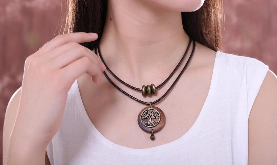 The Tree of Life Pendant Necklace is a lovely item of jewellery you’re sure to wear for years to come. With a distinctly bohemian style, the necklace consists of a wax rope chain and a large, round, wooden pendant, featuring – you guessed it – the tree of life. More to see in the wood jewelry!
