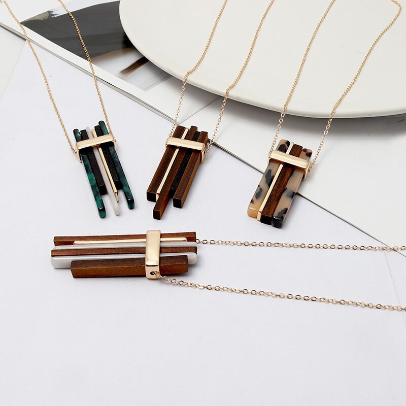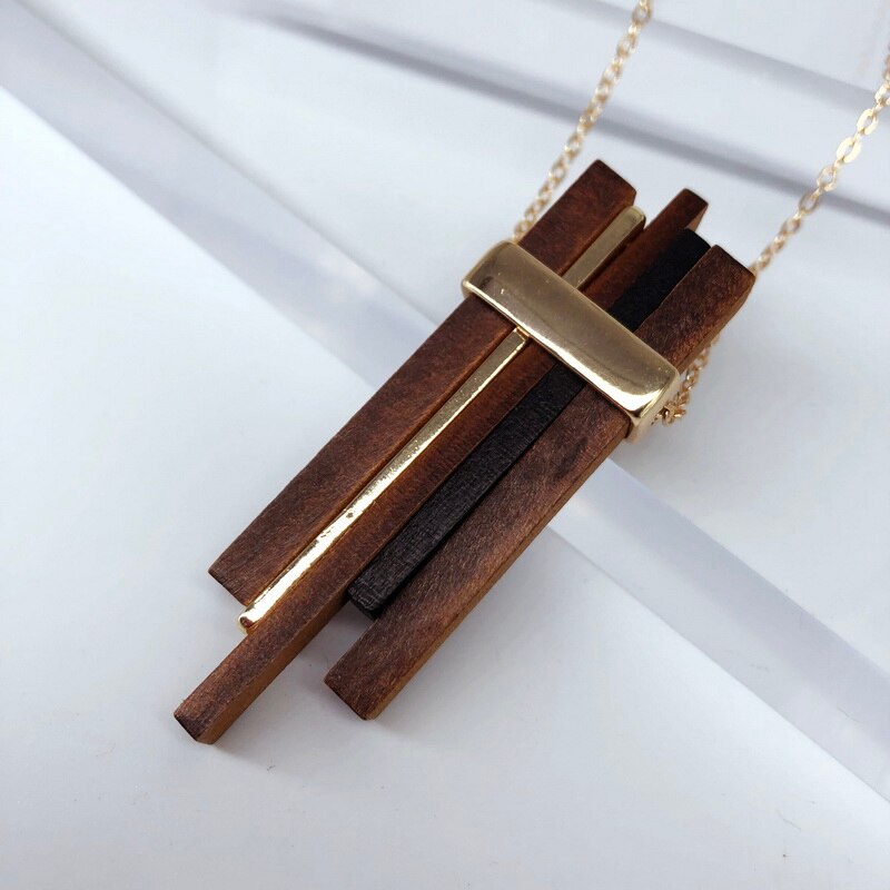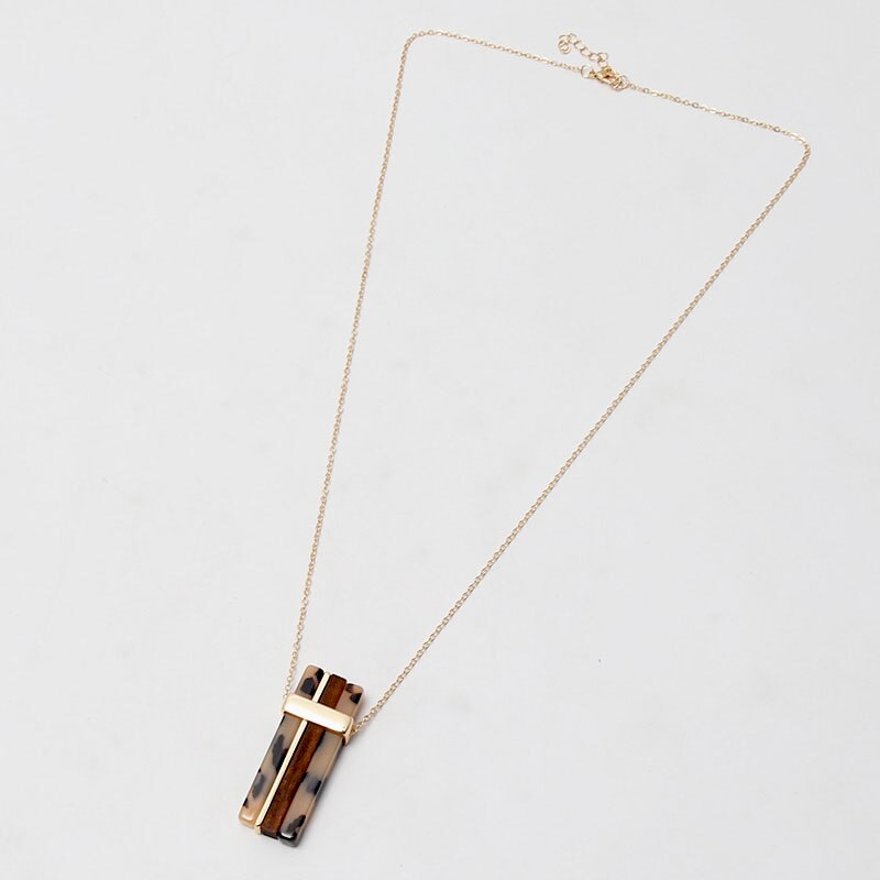 This lovely Wood Bar Necklace, which can be worn by both men and women, includes an 84cm rope chain and a pendant made of wood and metal, measuring 6.5cm by 2cm. The wooden part of the pendant comes in a range of different colours including aqua, burnt orange and black. See here now more of this great modern necklace.