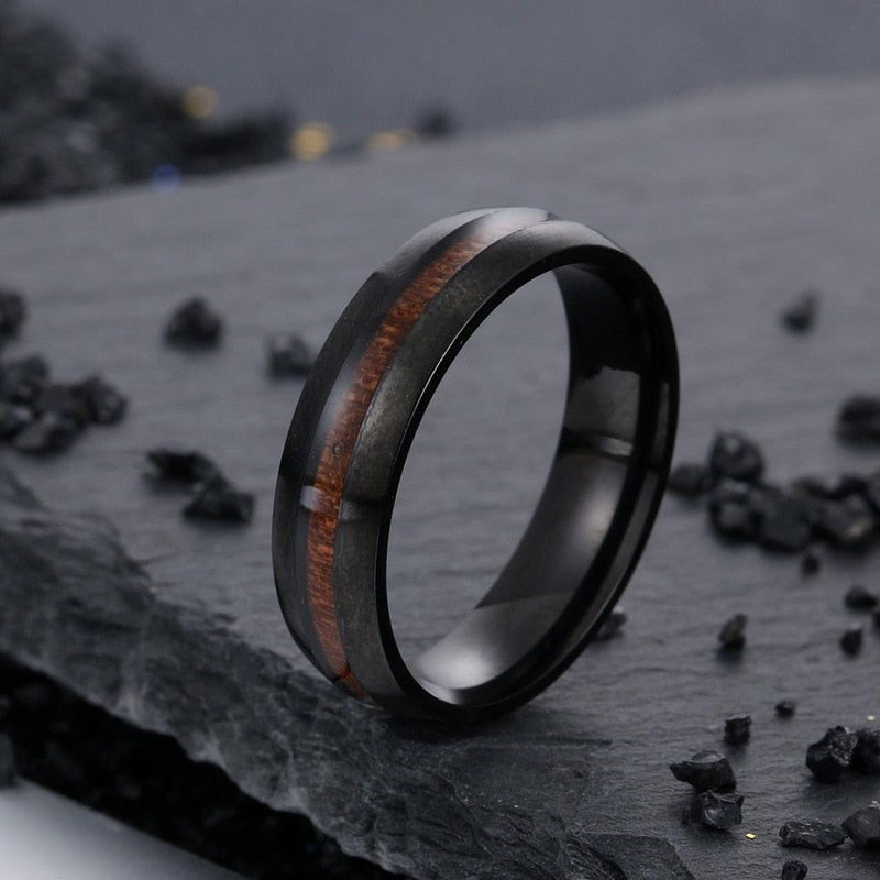 Whether your style is more classy or laid-back, the unique design of this wooden classic ring is sure to complement and complete your look. The sophisticated design of the ring also makes it an excellent choice as a wedding band—with so much more to offer its wearer than a typical golden one! This band is 6 mm wide and comes in ring sizes 7 to 12. Find more in the wood rings sale.