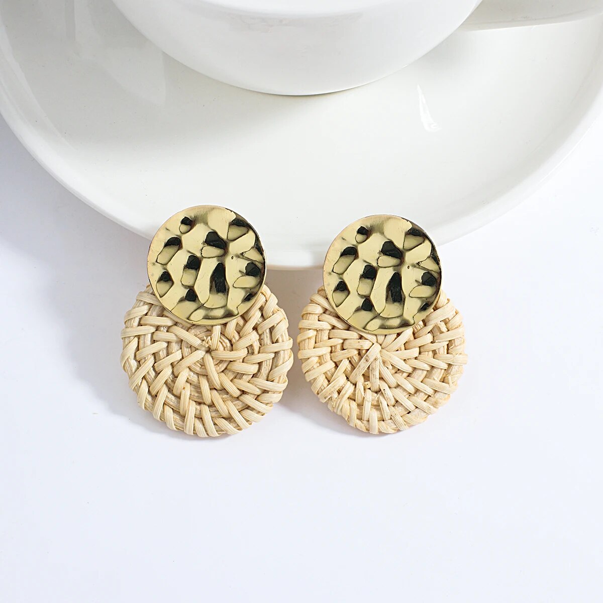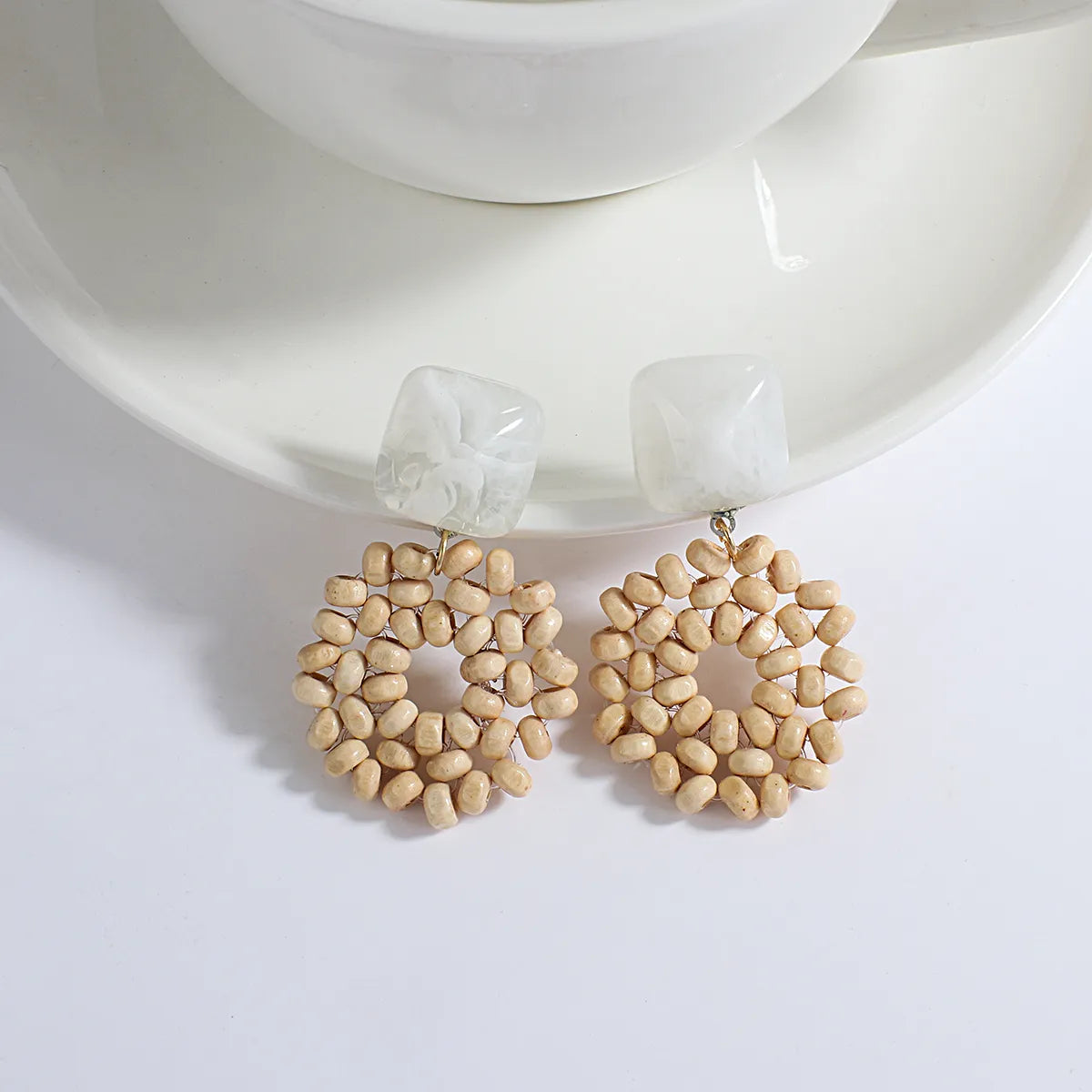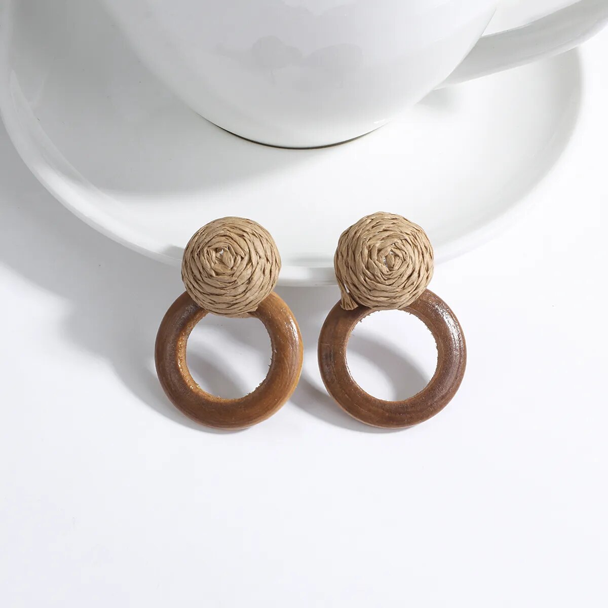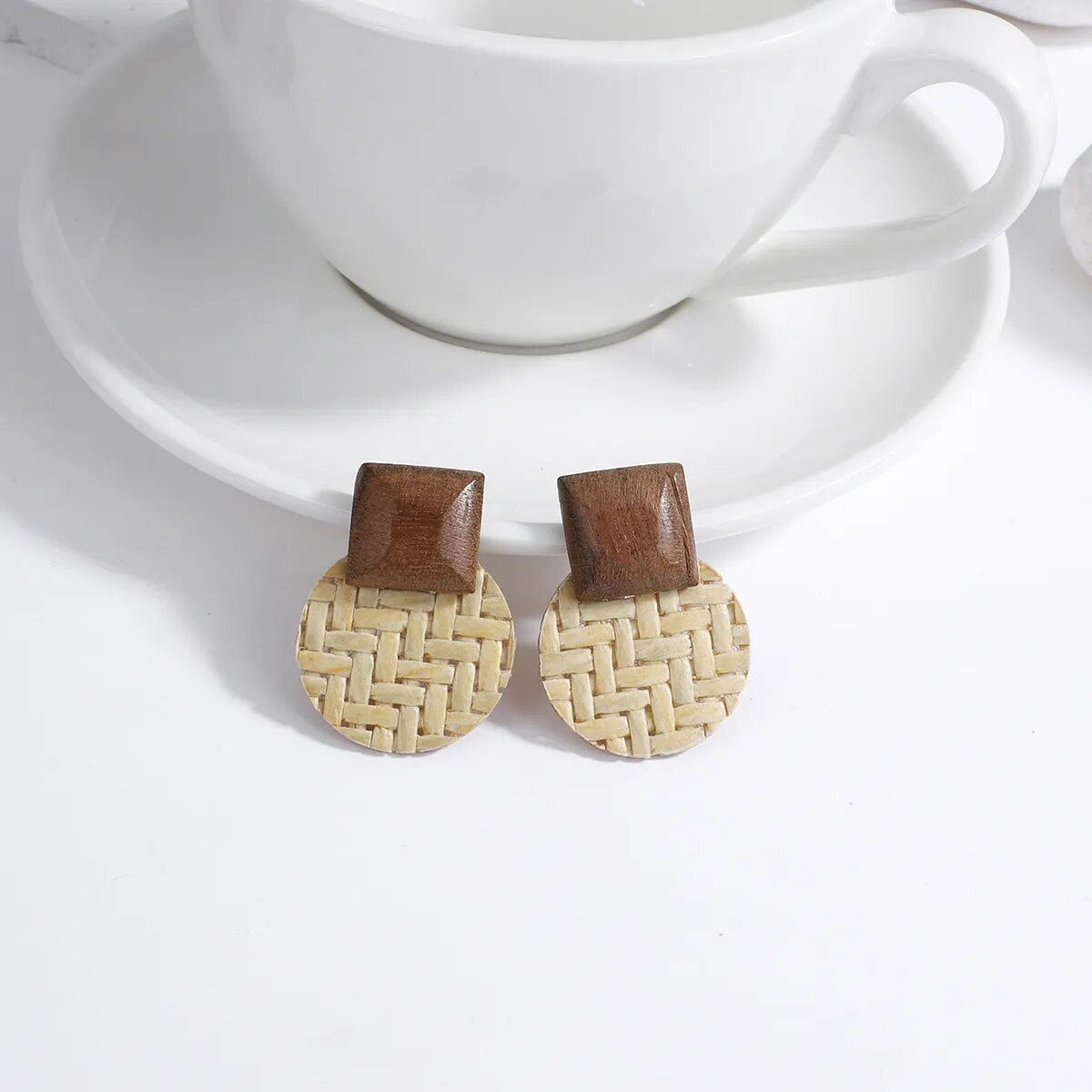 AENSOA’s Wood Earrings come in 27 varieties, all featuring beautiful natural materials, from wood to stone. Whether you want a stunning set of hoops with smooth wooden beads, a sophisticated woven disk hanging from golden studs, or drop earrings featuring light tan teardrop pendants with exquisite patterns, we have the perfect pair for you.